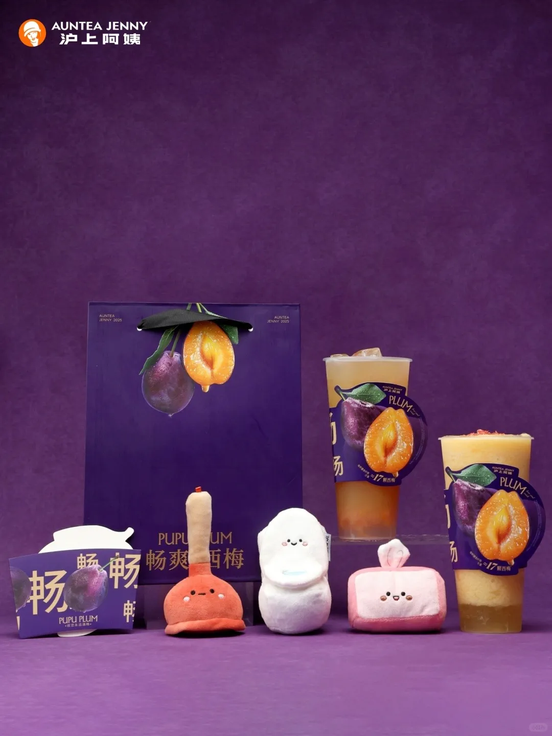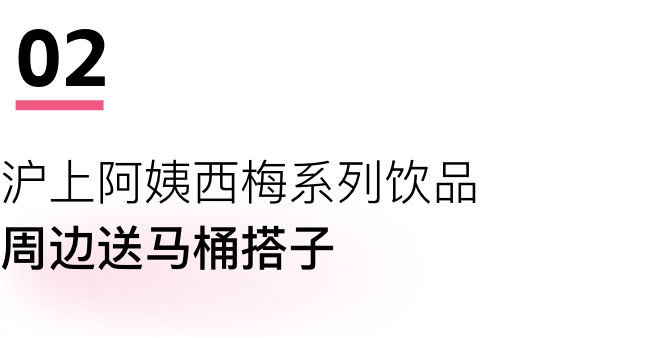 好玩的是,饮品周边送的是马桶搭子“三件套”——毛绒马桶橛子、毛绒小马桶和毛绒厕纸。沪上阿姨似乎并不在意“喷射”可能会给品牌带来负面影响,大大方方地推出马桶搭子,还把PUPU写在产品名和海报上~