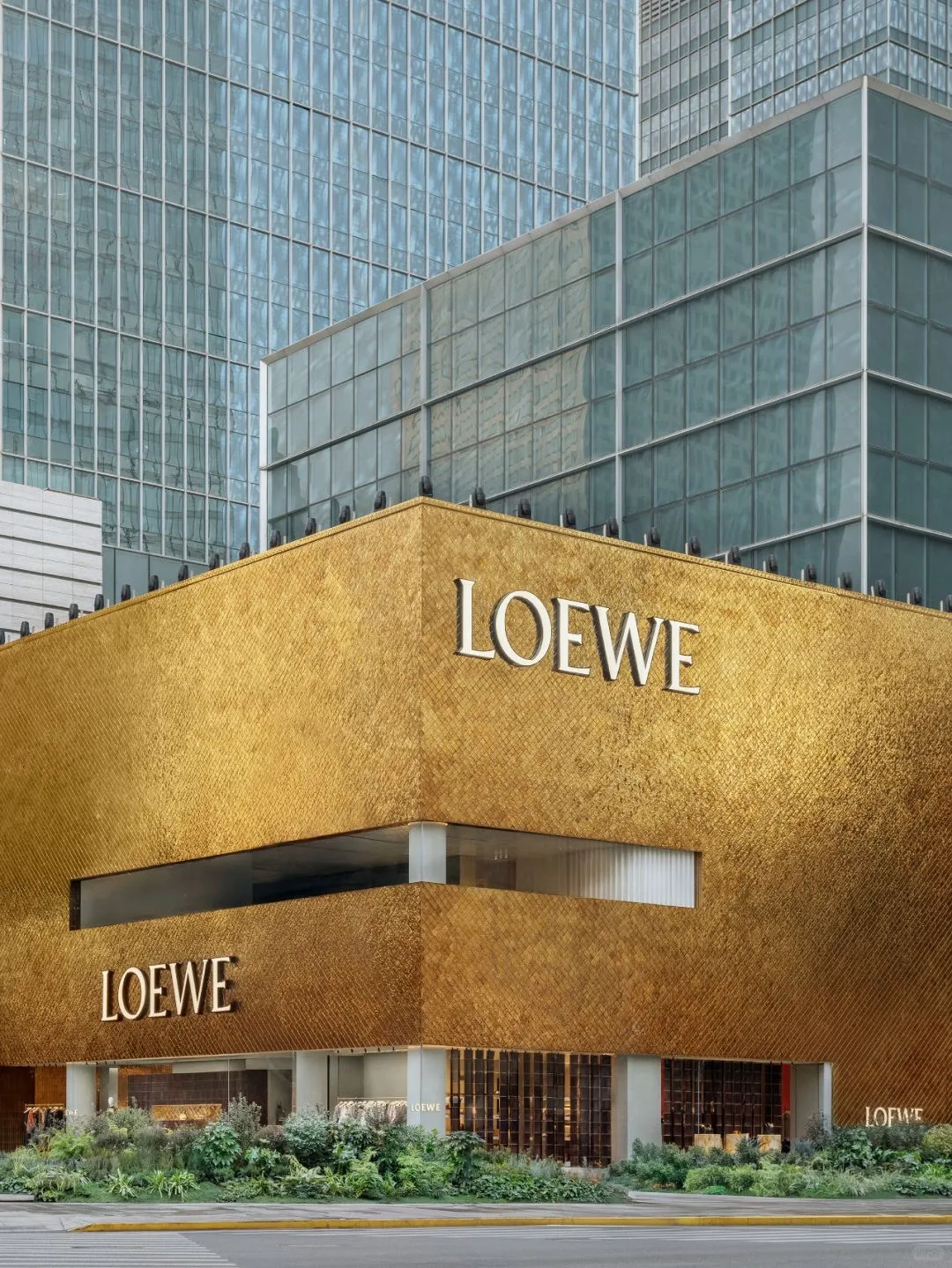 其实,这是LOEWE为上海罗意威之家的开幕打造的一场活动。上海罗意威之家是品牌在亚洲最大的精品店,外墙金光闪闪,十分豪华贵气的样子。