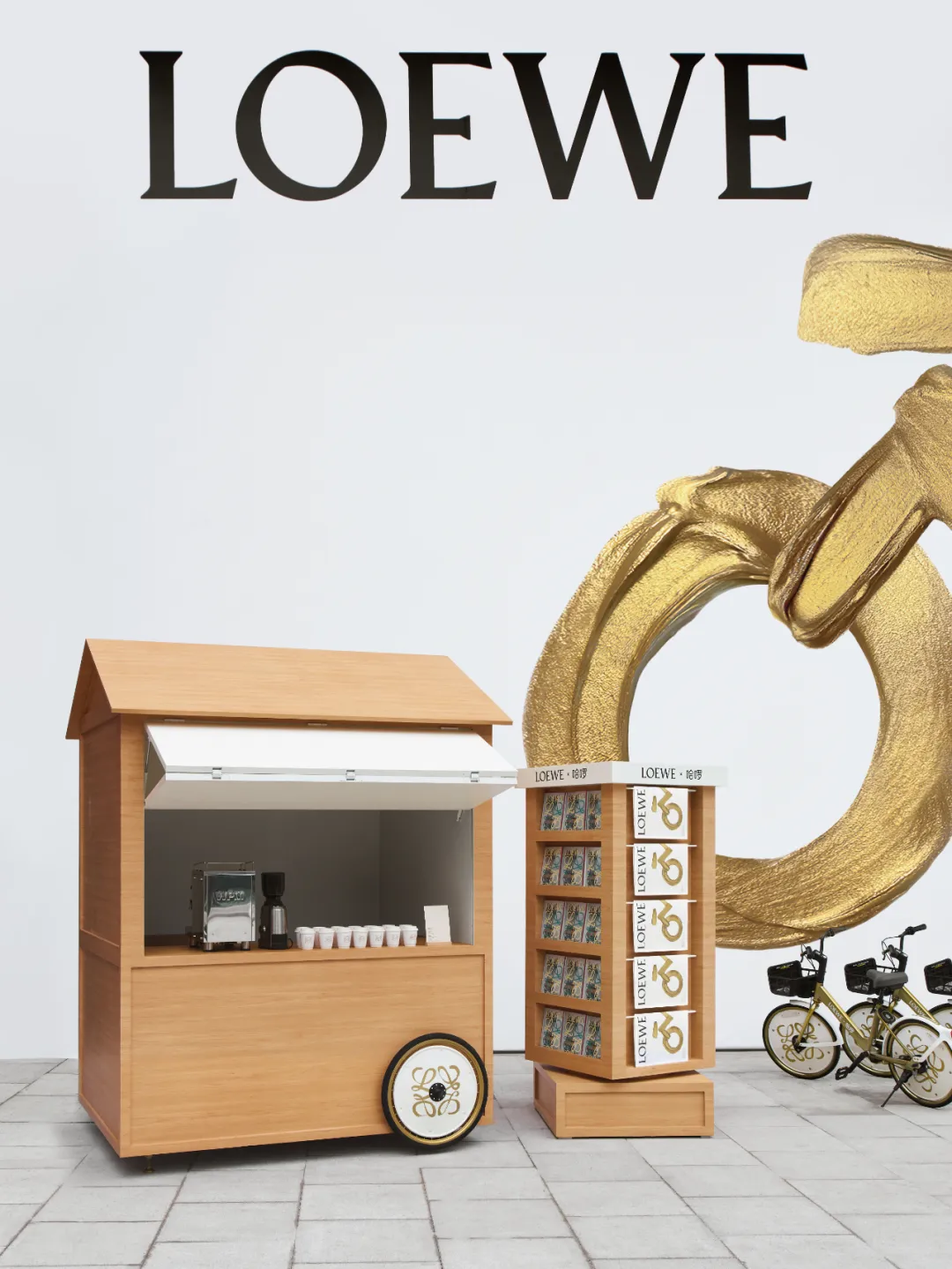 一辆自行车放在爱马仕店里要卖16万,而LOEWE的自行车就停在大街上给大家骑,骑了还有免费咖啡喝~