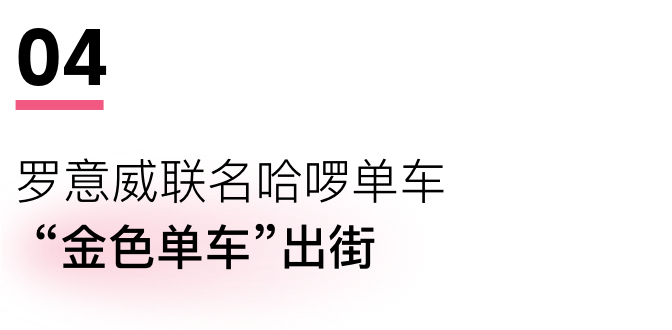 除了联名本身,用户在哈啰app参与挑战赛,累计骑行3公里,还可以在上海罗意威之家限时咖啡车领取限量的《罗意威金色骑旅限定画报》及咖啡赠饮。