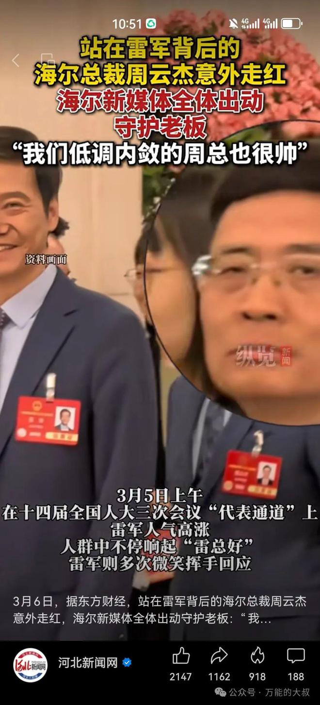 综上,现在大家知道了,和雷军同框的海尔老总,他叫周云杰!