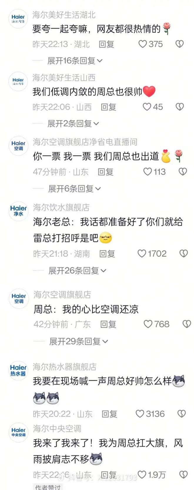 最新的消息,海尔蓝V已经集体出动,在留言区给周总打call。