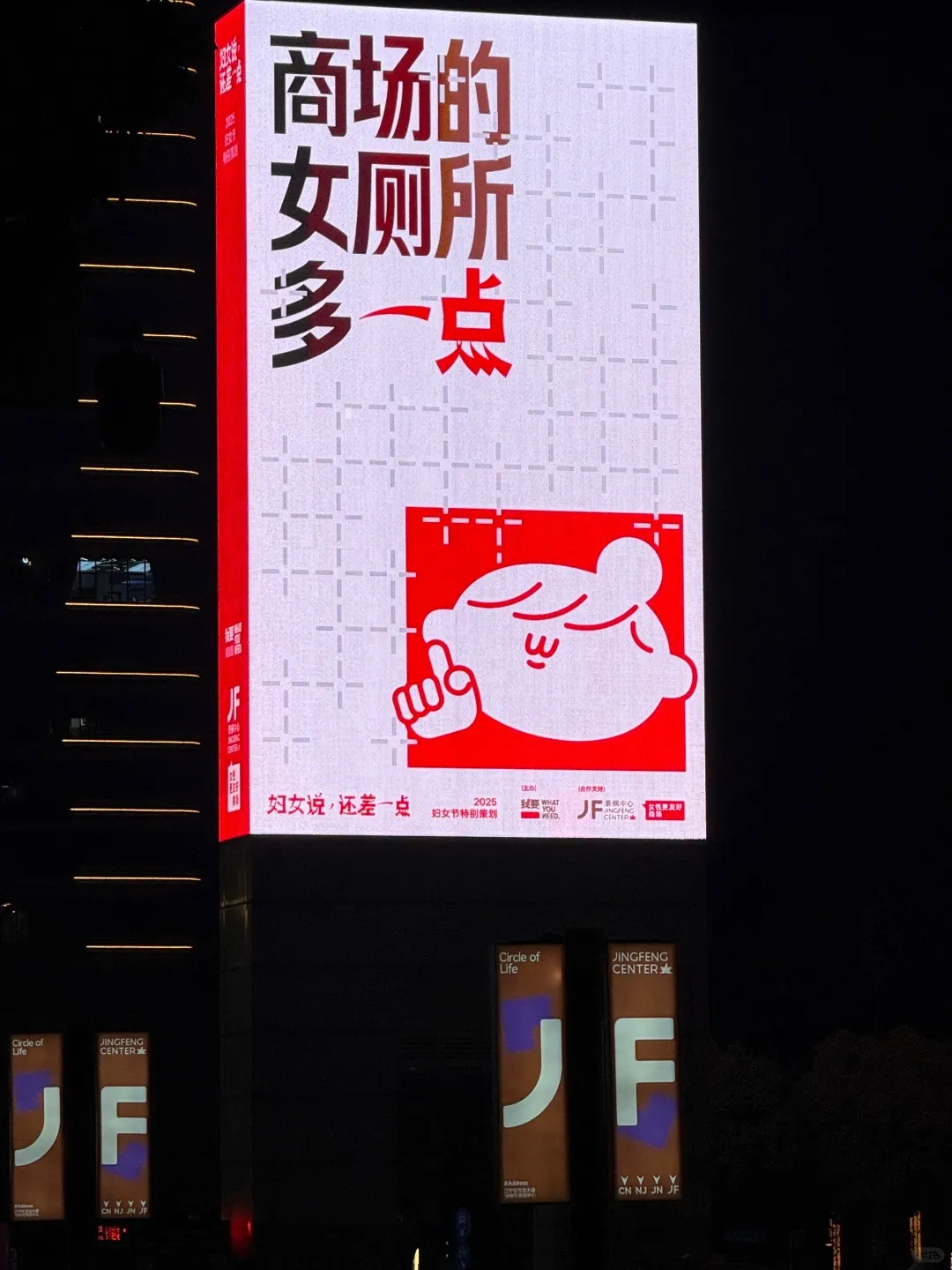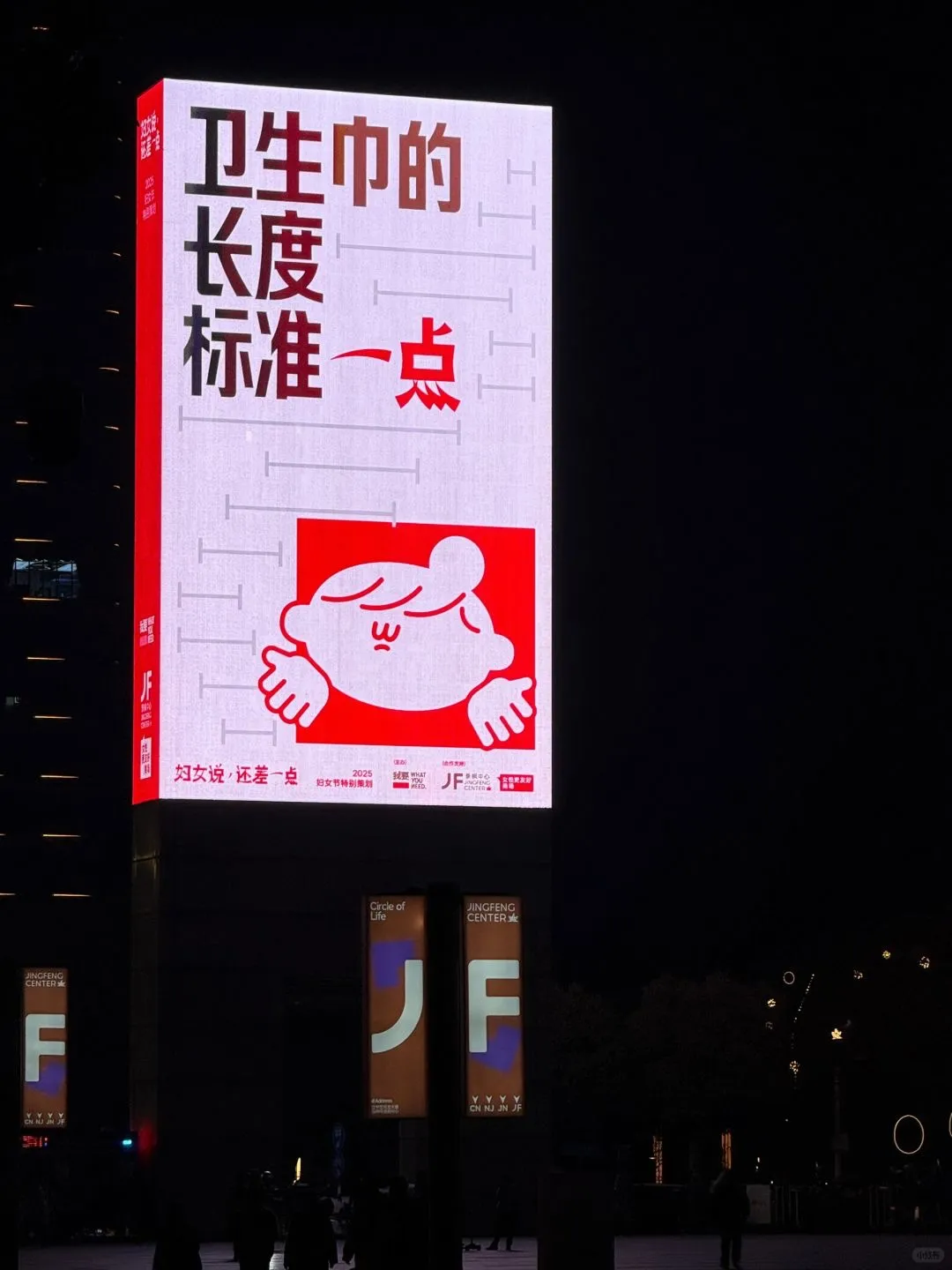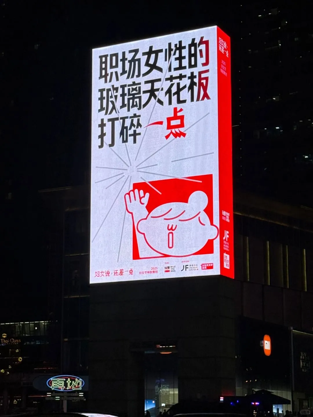 这个三八妇女节,景枫中心联合青年媒体@我要WhatYouNeed,共同发起特别策划活动,借户外大屏展示了一套妇女节文案海报《妇女说,还差一点》。