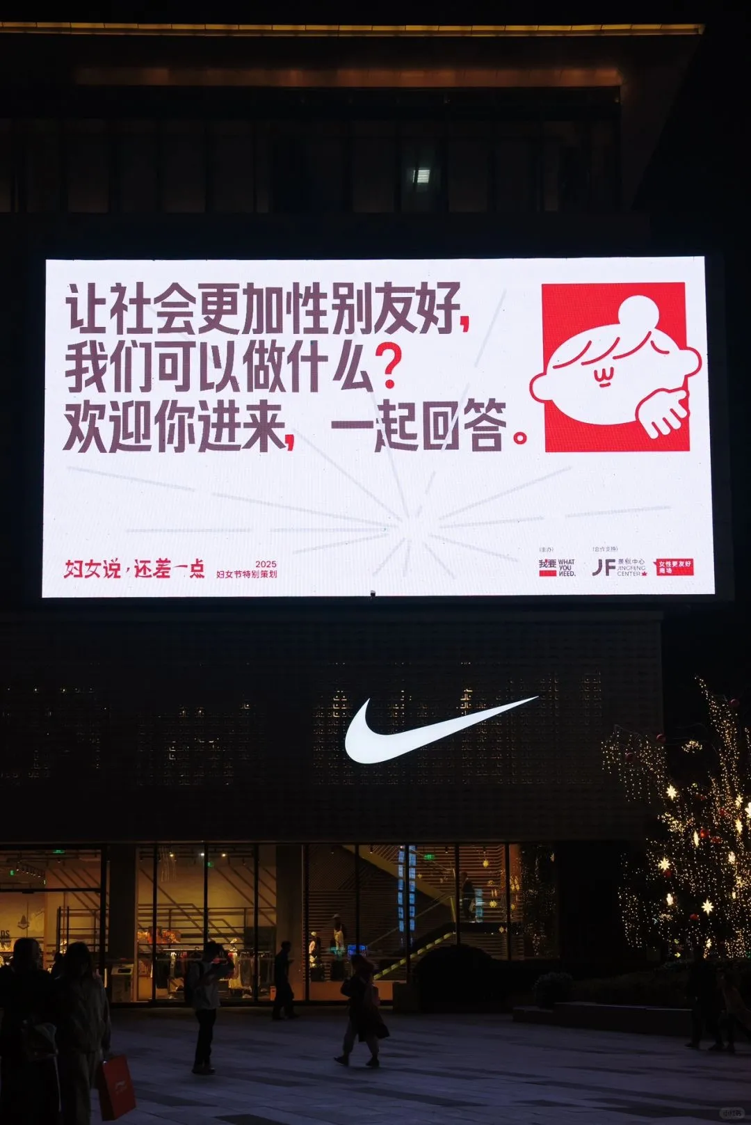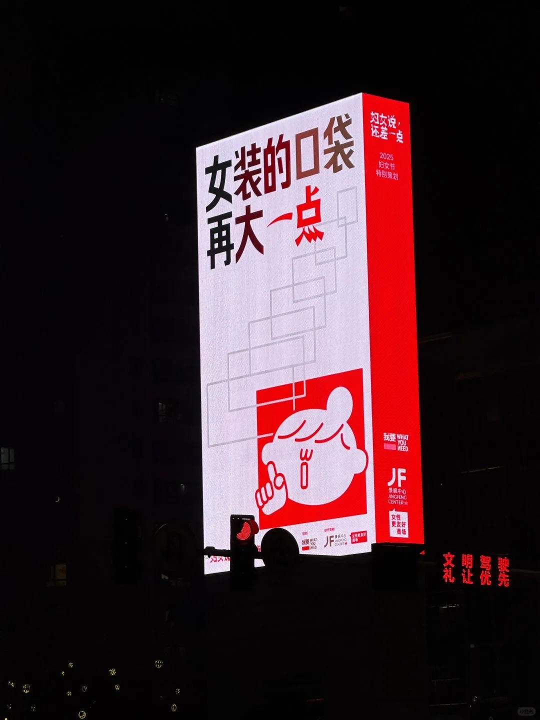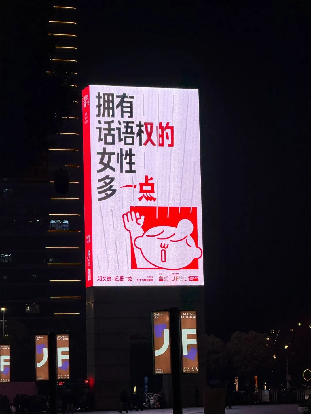 这个三八妇女节,景枫中心联合青年媒体@我要WhatYouNeed,共同发起特别策划活动,借户外大屏展示了一套妇女节文案海报《妇女说,还差一点》。