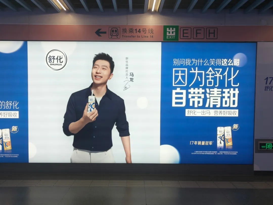 有网友在地铁站看到了马·六边形战士·龙的舒化奶海报。