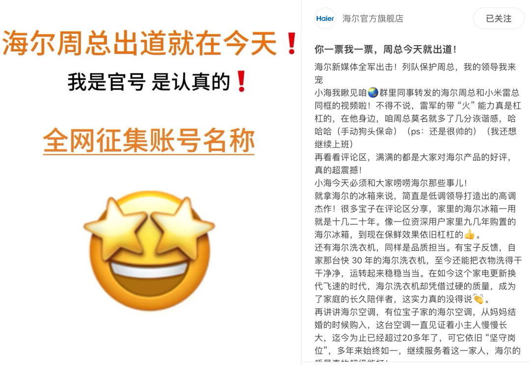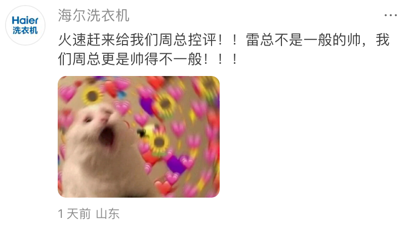 眼看着周总要在雷总面前“败下阵来”,海尔新媒体全军出击——都跑出来控评了!
