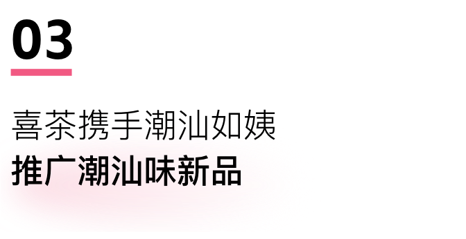 在喜茶的宣传片中,如姨用潮汕方言唱了一首潮汕童谣。网友表示,喜欢如姨朴实无华、真挚自信的样子,喜欢如姨代言的饮品。
