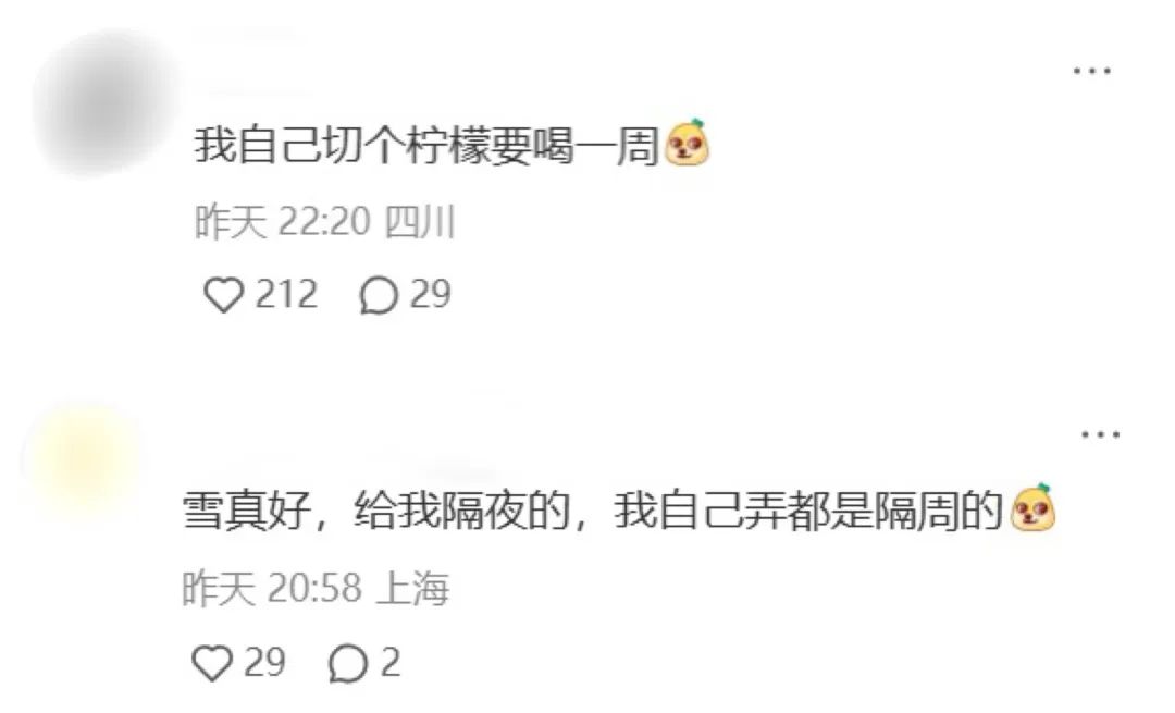 佛系养生达人率先开麦:“我自己切的柠檬片能在冰箱住半个月,雪王隔夜算个啥?”