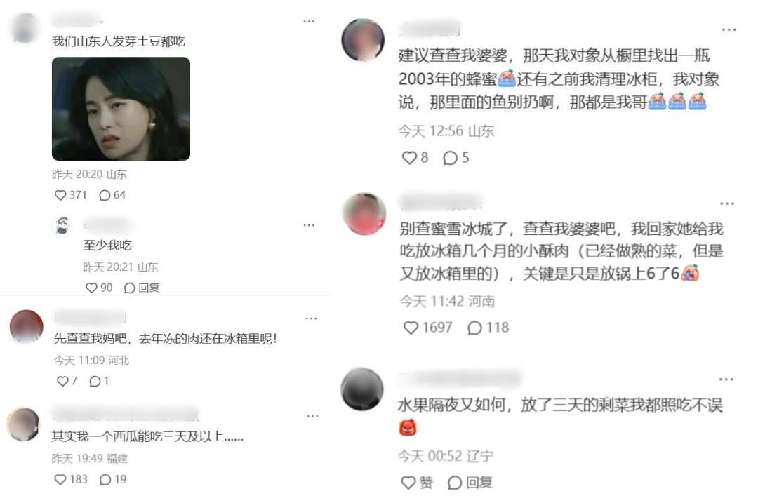 顺便建议有关部门查查自己的妈妈、婆婆,甚至自己,发芽的土豆、去年的冻肉、三天的西瓜、十几年前的蜂蜜……bushi,你们是真的不挑啊。