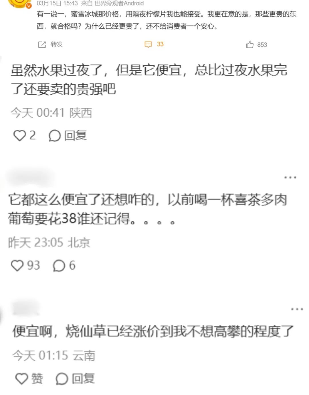 还有人从自己的实际经验出发,反向验证了蜜雪冰城除了隔夜水果是真材实料,还有茶也是真的,牛乳也是真的。