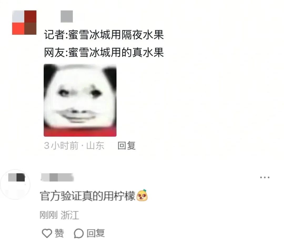 黄焖鸡被爆出剩菜加热再次售卖,8亿打工人怒吼:退钱!道歉!对得起我们吗!而蜜雪冰城某个店被曝使用过夜柠檬片,网友的态度是:小雪你能不能小心点,又被发现了,等等我想个理由给你圆回去!