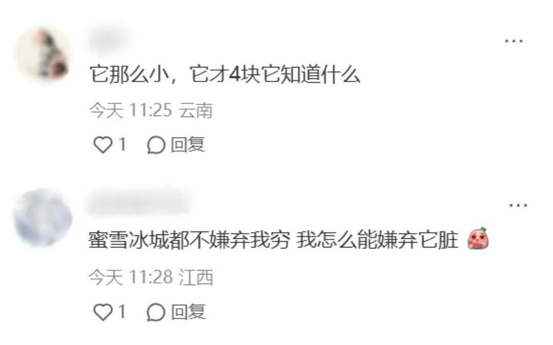 很多网友的确是冲着“极致性价比”成了雪王的忠实守护者,还是那句话,蜜雪都不嫌弃我们穷,为啥还要为难他呢。毕竟在打工人眼里,雪王早已不是普通奶茶店,而是对抗消费刺客的精神图腾!