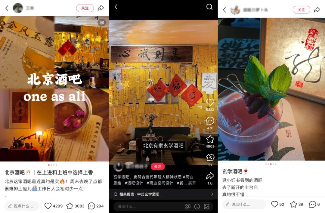 如在社交媒体上热度比较高的一家北京的玄学酒吧,从装修、座位、酒品选择等多个层面,充满了仪式感。如在进酒吧的玄关处有一个转盘,用户转一下,根据指针位置得到一张座位牌,这被视为是上半卦,而下半卦则是在酒产品的选择上,让其选择具有偶然性。