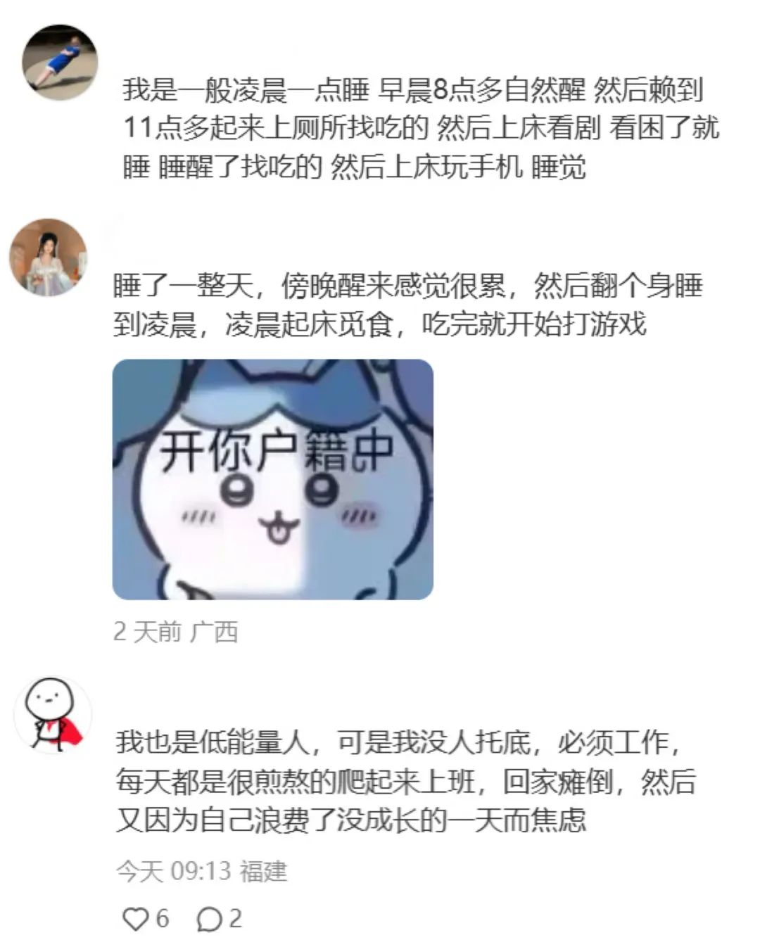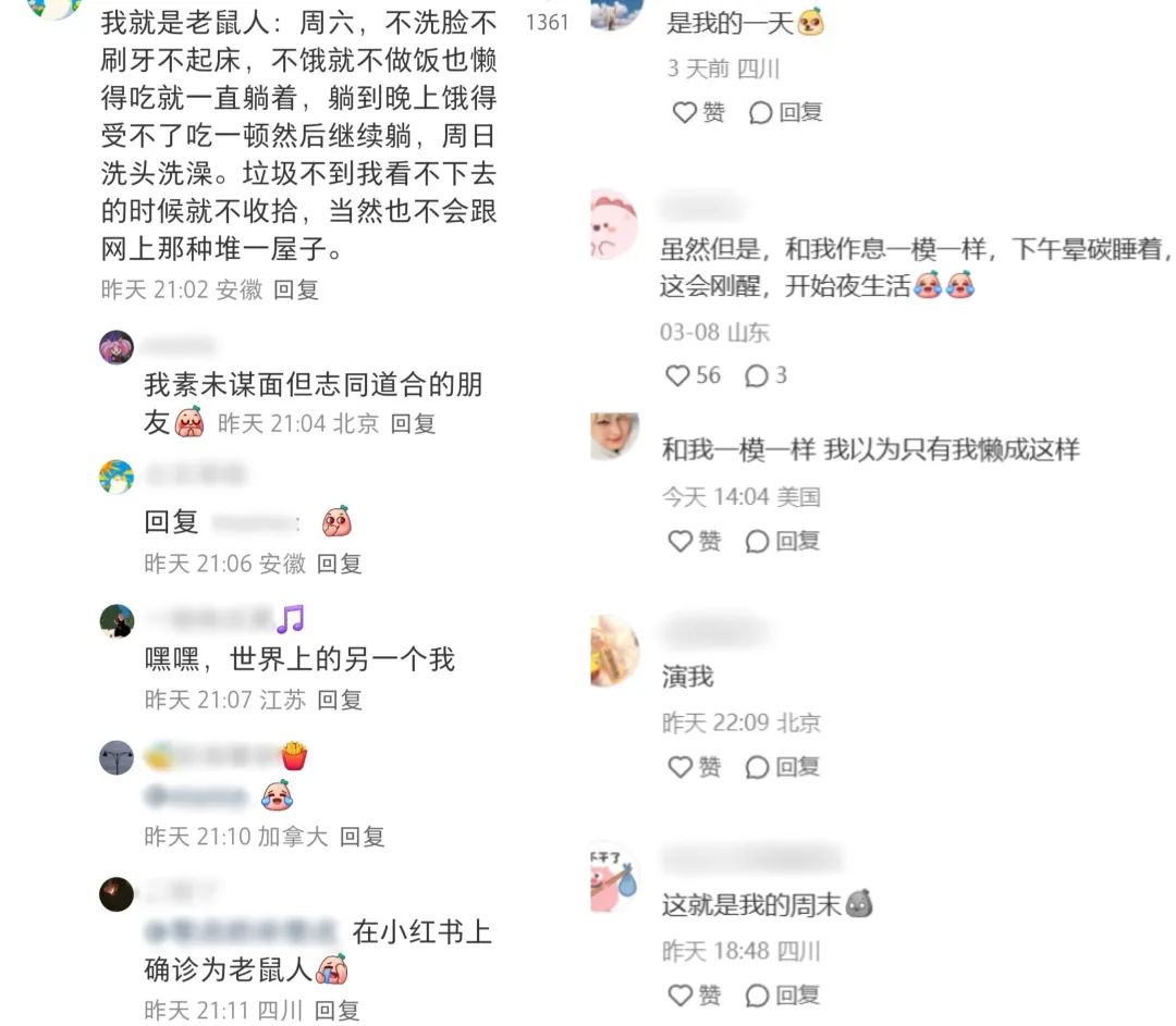无数网友在老鼠人评论区找到了组织,甚至主动分享起自己的养老作息以及间接性emo。