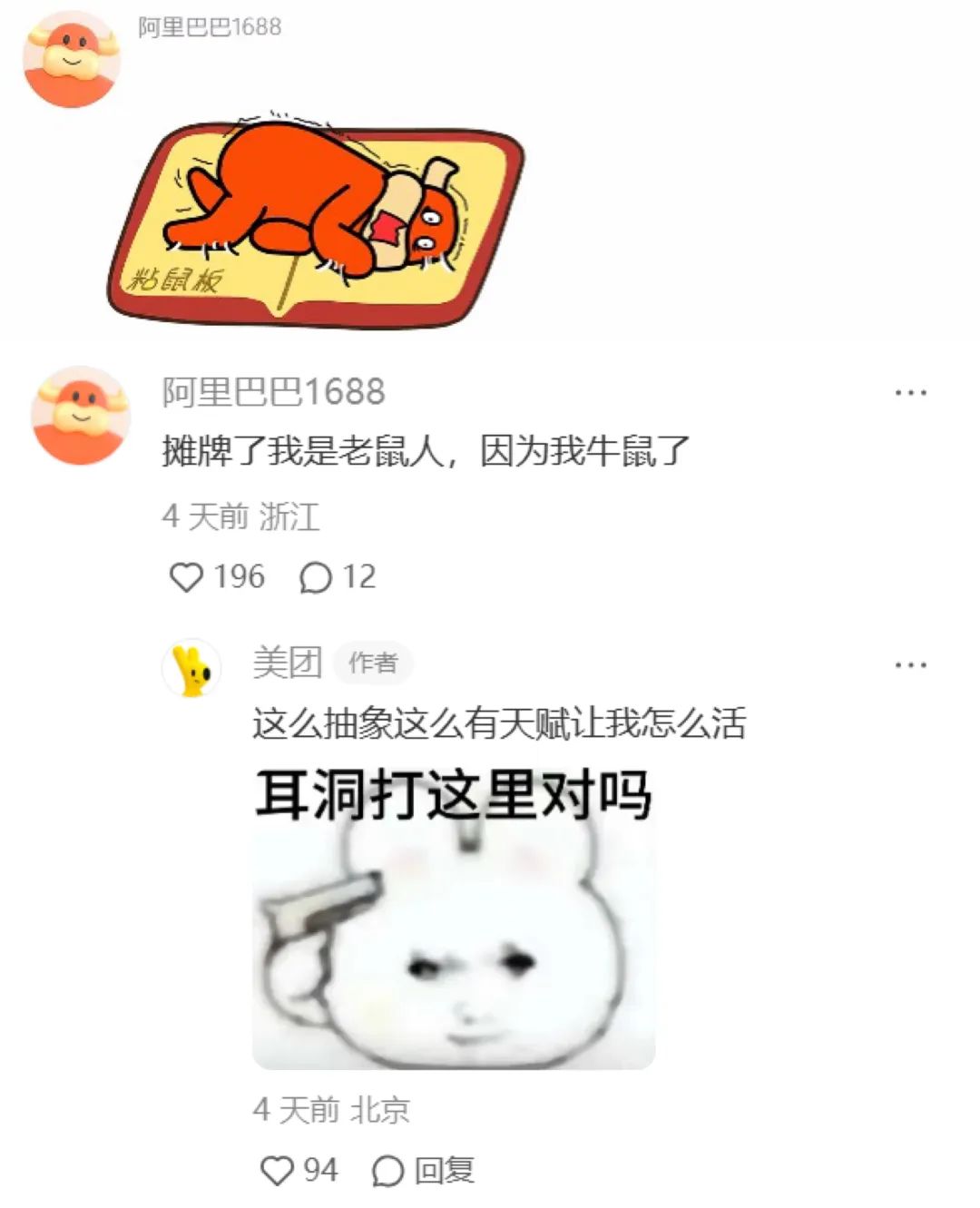 鉴鼠第二招,美团反手掏出粘鼠板,结果精准粘住阿里巴巴1688的牛公仔。