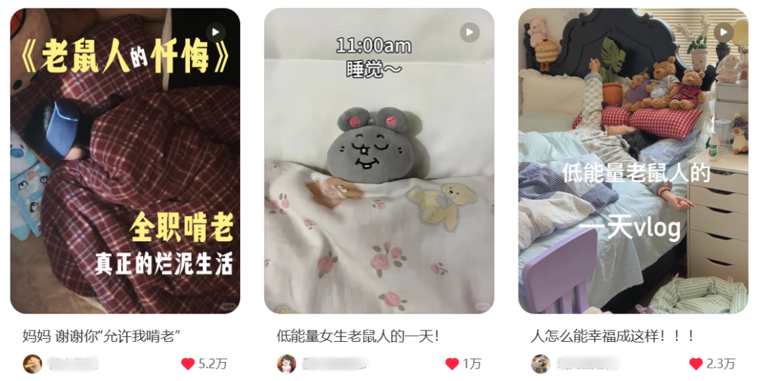 抖音和小红书也开始刮起了一阵“低能量老鼠人vlog”风,动辄上万的点赞量,不禁让阿广感慨:这么小众的赛道,硬是被你们老鼠人给闯火了。