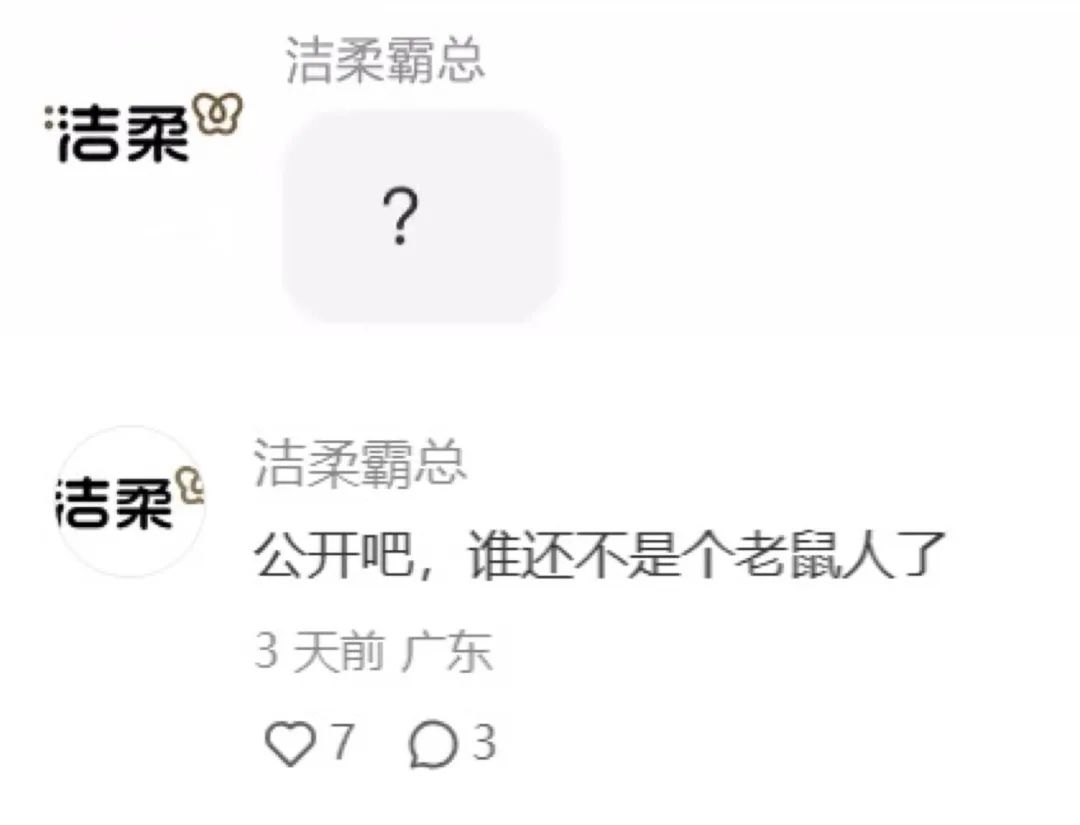 其实很多时候老鼠人会白天化身被996榨干的社畜,在格子间当永动机,只有等到周末,才会卸下人类的伪装,变回“老鼠”的状态,就像i人为聚会硬凹e人。也因为这些令人费解的伪装,越来越多网友开始沉迷于鉴定身边朋友是不是“老鼠人”。