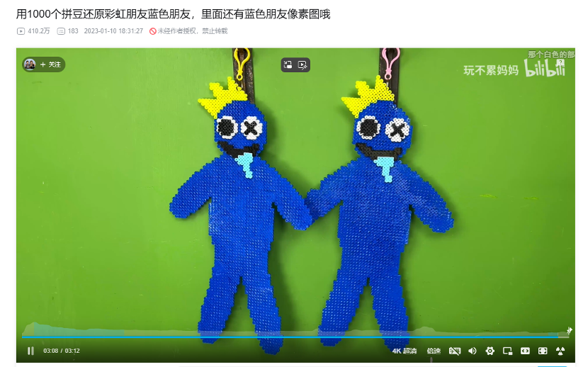 在各大社交平台,#二次元手作#话题下聚集着惊人的创造力。B站UP主“玩不累妈妈”发布的《用1000个拼豆还原彩虹朋友蓝色朋友》播放量突破400万,评论区挤满催更的粉丝;小红书上的#流麻#话题浏览量已经达到9.1亿,一些自制流麻博主的教程视频收藏量甚至过万……