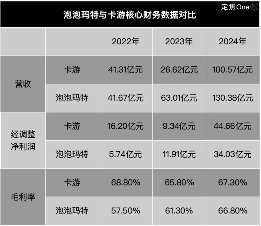 2024年也是卡游的丰收年,在经历2023年的营收下滑后,2024年营收达100.57亿元,增幅达277.76%,经调整净利润为44.66亿元,同比暴增378.67%,高于泡泡玛特。