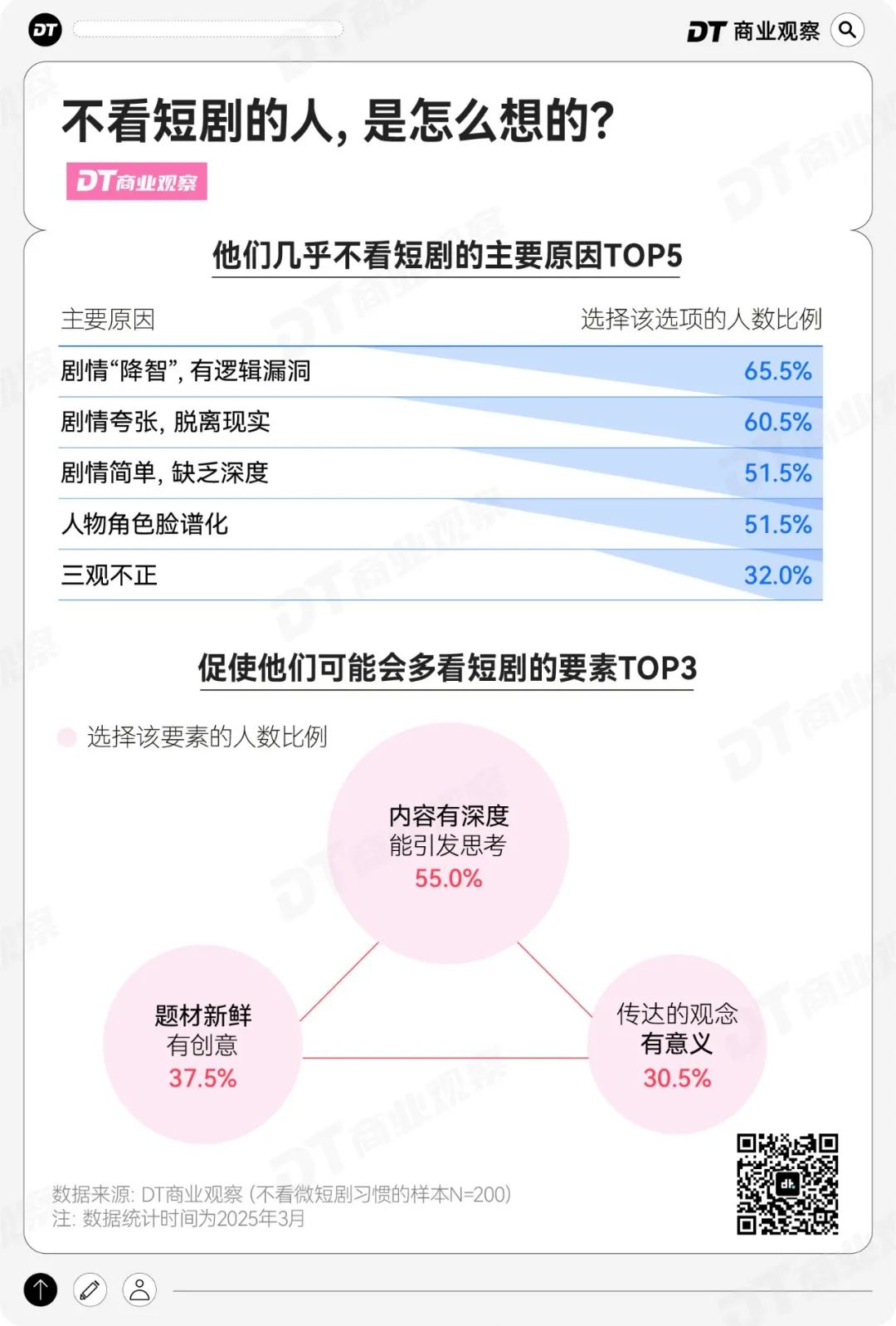 同时,超过一半不看短剧的人认为,如果未来的短剧“内容有深度,能引发思考”,会考虑多看短剧。
