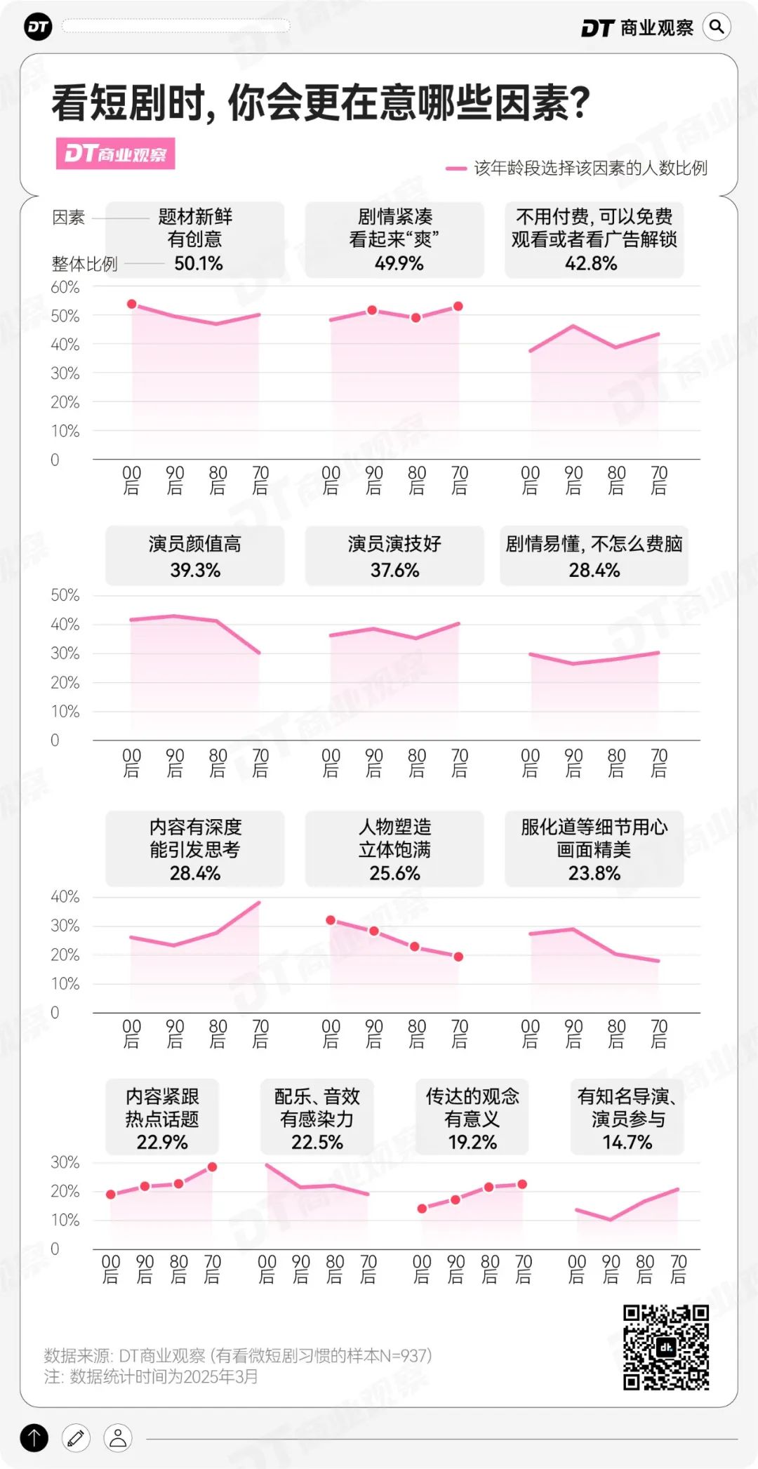 所以在观众这一侧,目前更多是有啥看啥,哪有免费的就去哪,没有特意关注某个制作出品公司或者短剧厂牌。