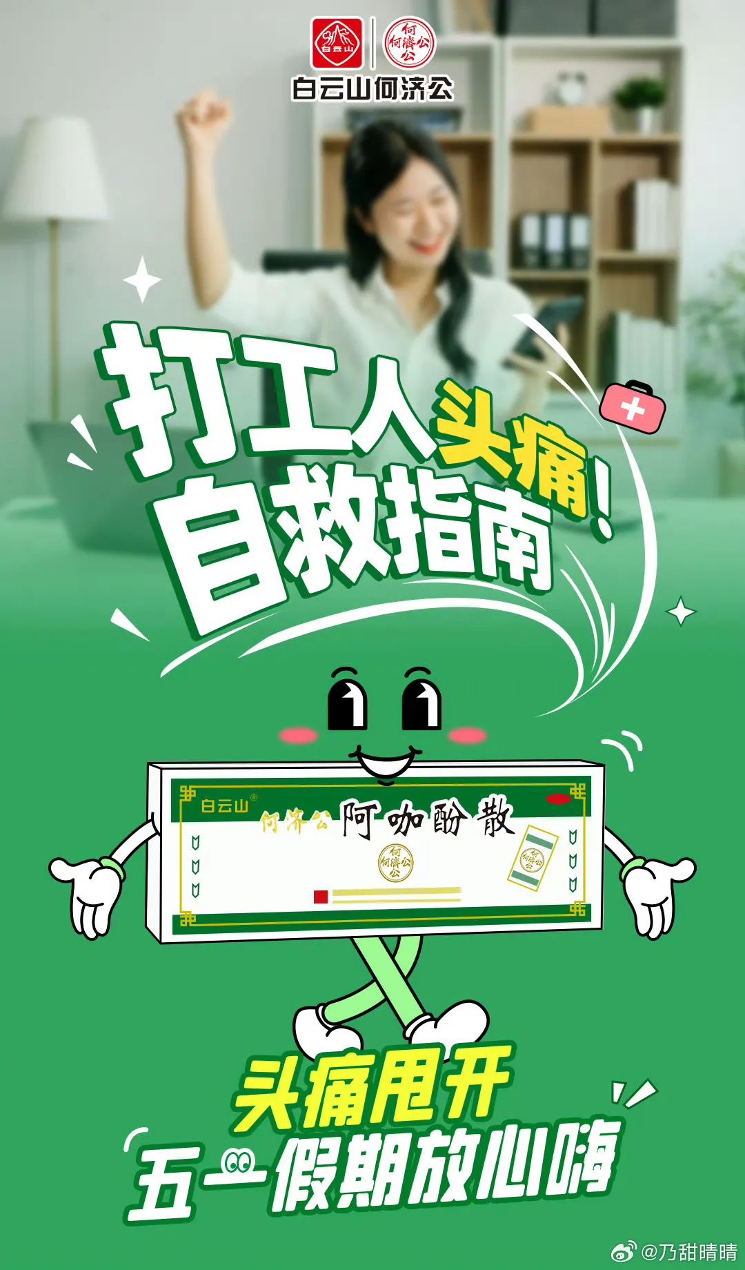 还有今年五一假期,#上4休5上4#、#当苹果闹钟遇上调休#等关于调休的话题又一次上了热搜。针对调休让很多打工人头痛不已这一普遍情绪,白云山何济公药业打造了一个#跟头痛说bye跟五一说hi#的微博话题,来推广旗下产品阿咖酚散,打造“打工人头痛自救指南”,取得了非常好的传播效果。