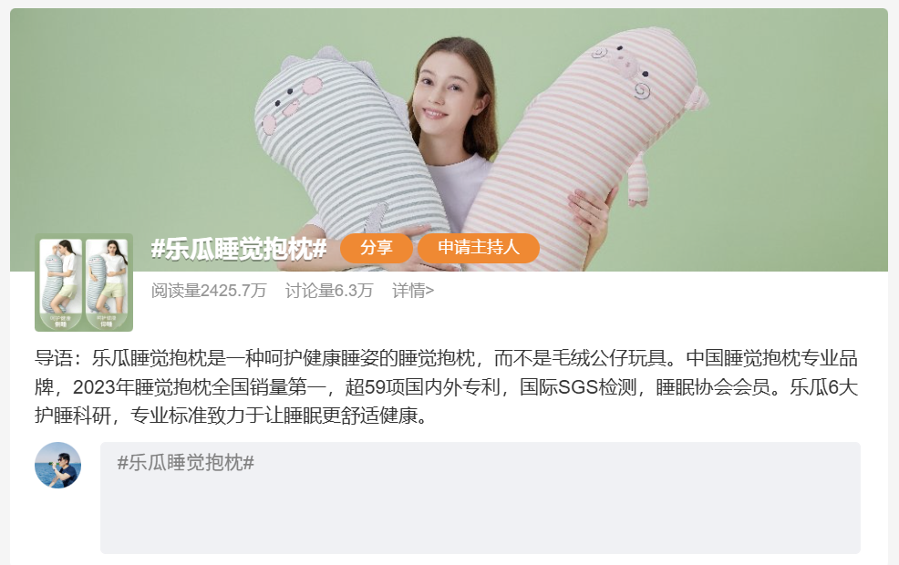 比如4月底,微博上还有一个热搜话题叫做#正式被确诊为一次性电池人#。它形容的是那些能量消耗极快,只能完成单任务的职场人,再多做一点事就没电了,必须得回家充电。乐瓜睡觉抱枕利用这个话题,给自己贴上了一个标签做叫“充电神器”,取得了非常好的传播效果。