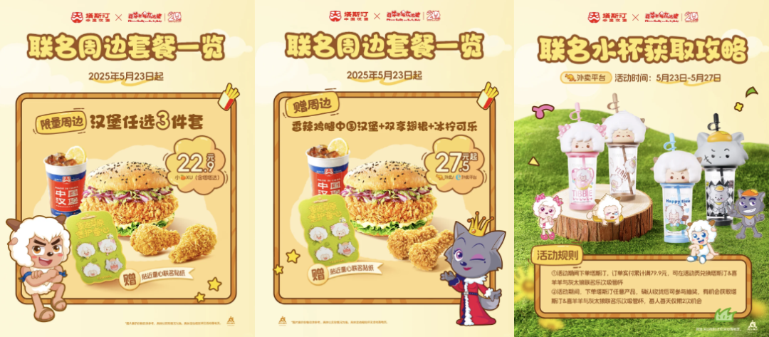 看到这儿大家应该都轻车熟路了。购买限量周边汉堡套餐,随餐获赠喜羊羊与灰太狼联名贴纸。