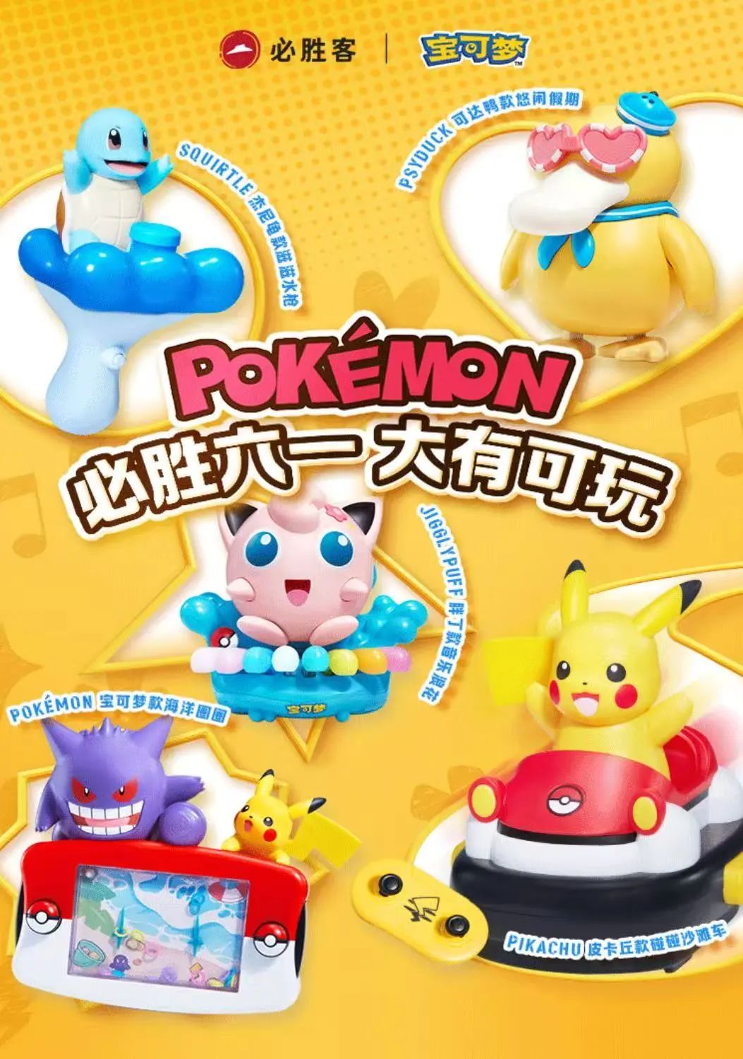 除了可漂移可双人竞速的皮卡丘碰碰沙滩车,还有戴着感光变色墨镜的可达鸭,能跟着音乐跳社会摇,坐在琴键上的胖丁,琴键真能弹出音乐,宝可梦复古游戏机,不过只能玩套圈游戏,以及杰尼龟水枪。