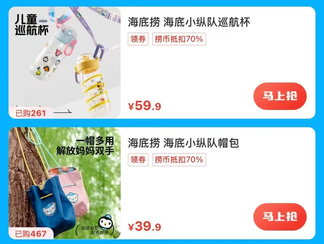 在开发副业这一块从不设限的海底捞自然是不会错过整活儿的机会,联名《海底小纵队》,推出了一系列玩具。