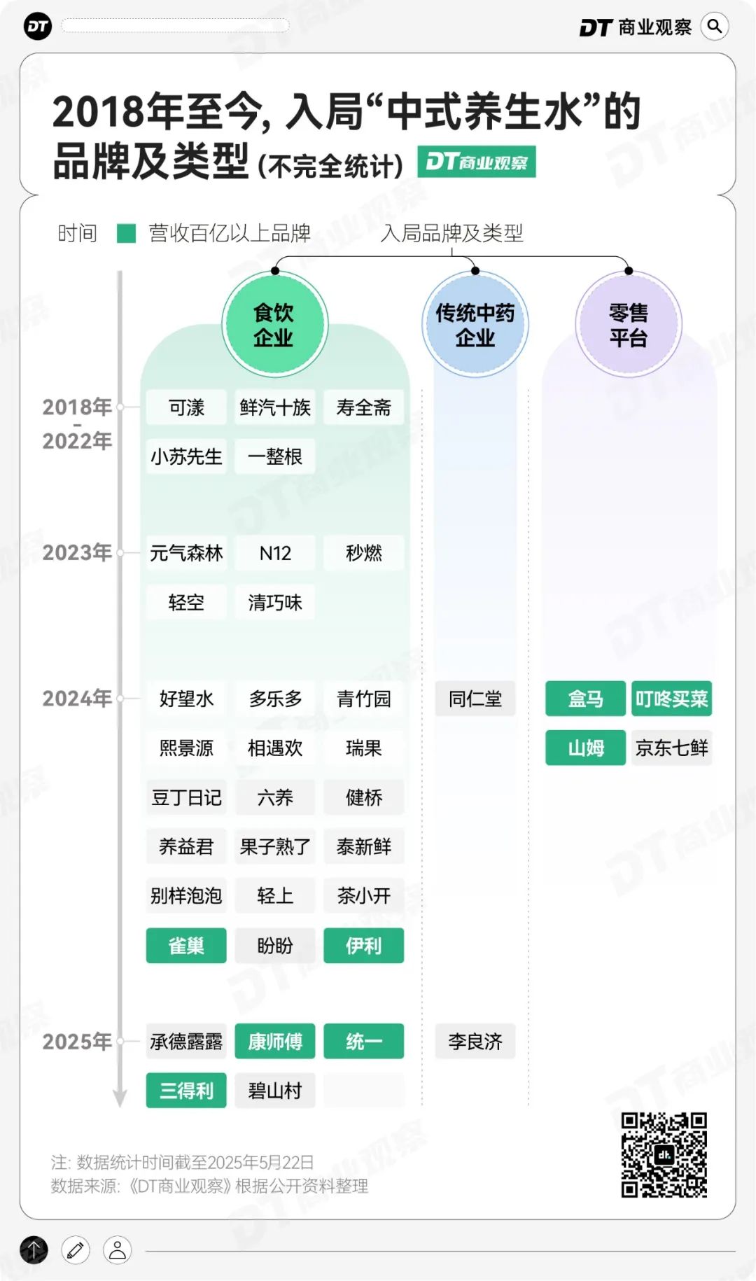 规模虽小,最近一年入局中式养生水的品牌和上市新品可不少。