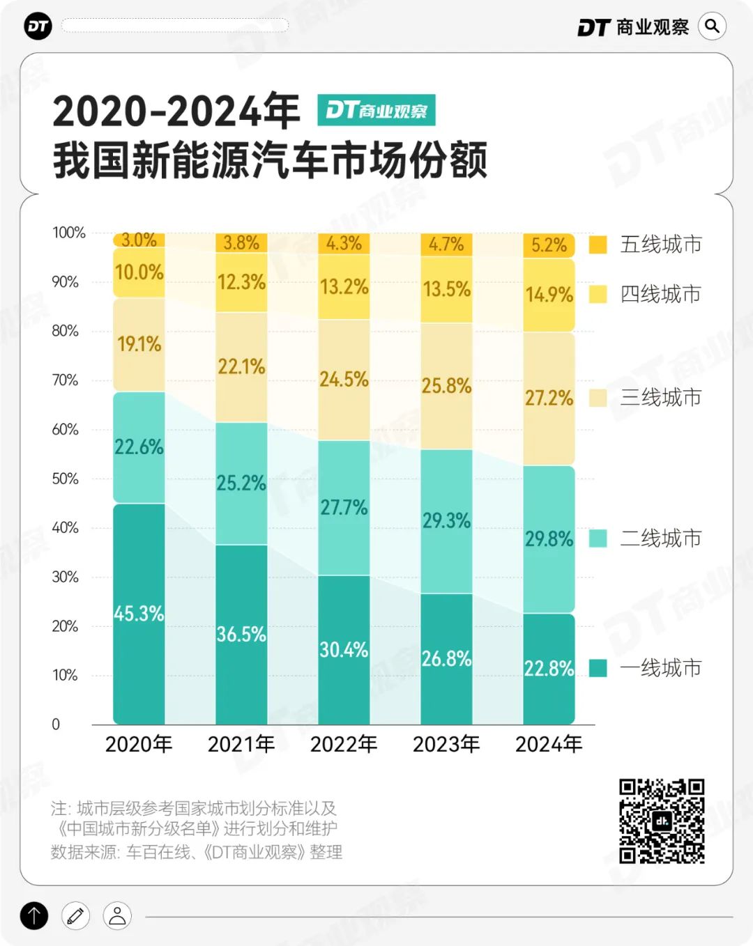 新能源汽车的舞台,从最初聚焦于繁华的一二线城市,延伸至四五线城市。