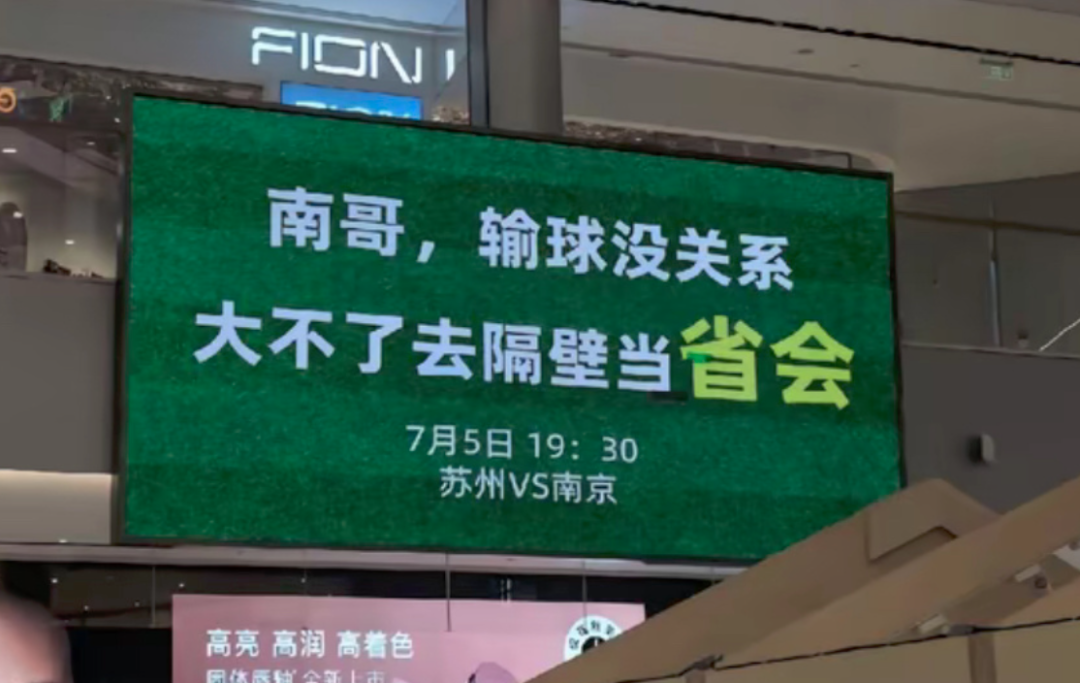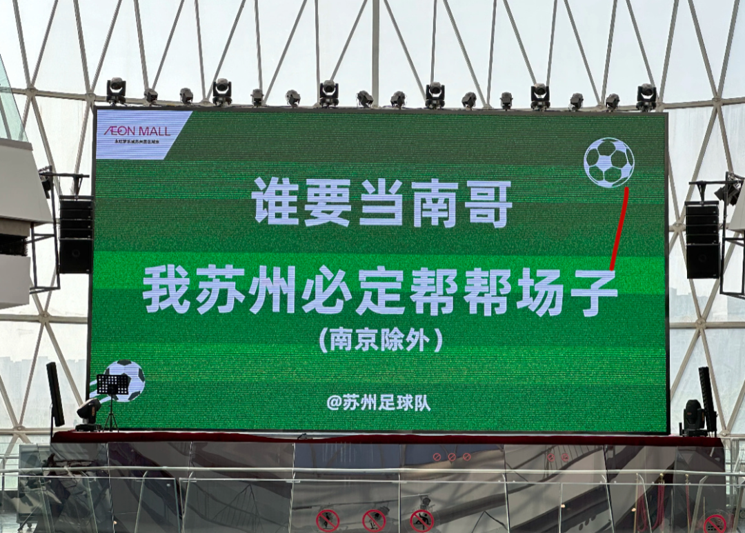 位于苏州的商场大屏上,好多针对南京的“狠话”。