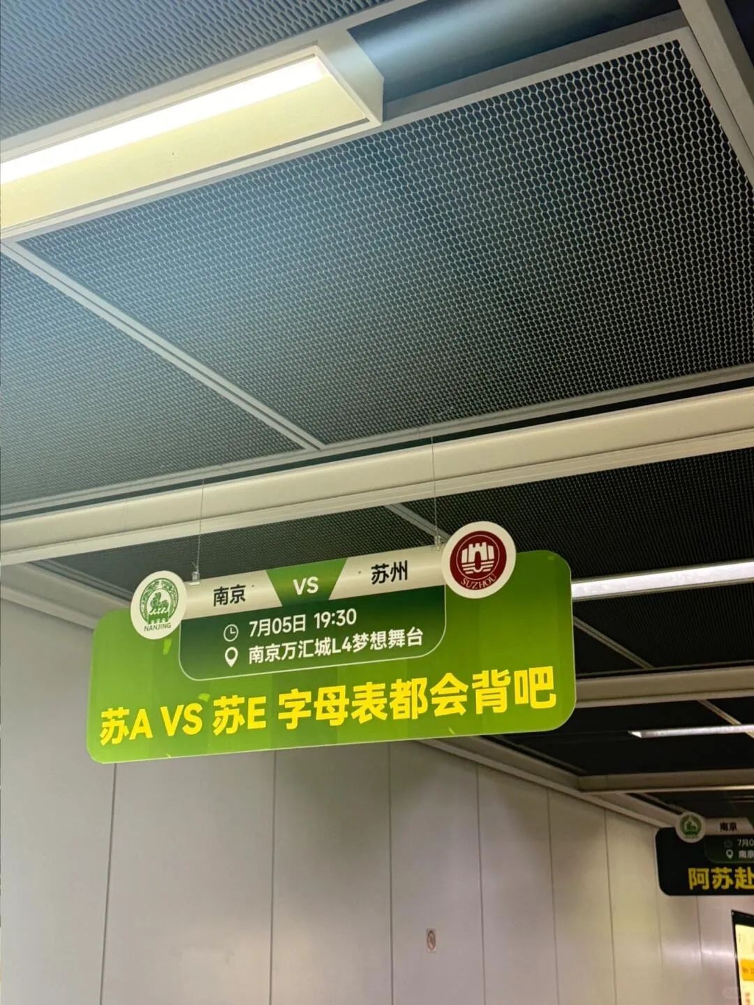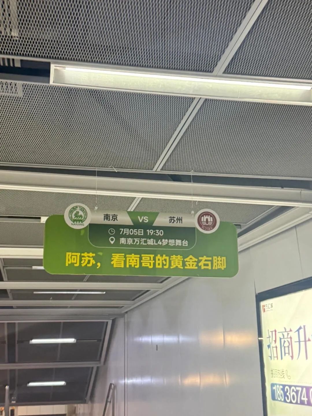 另一边,南京地铁暗戳戳发力,在地铁站内挂上了许多文案小广告。