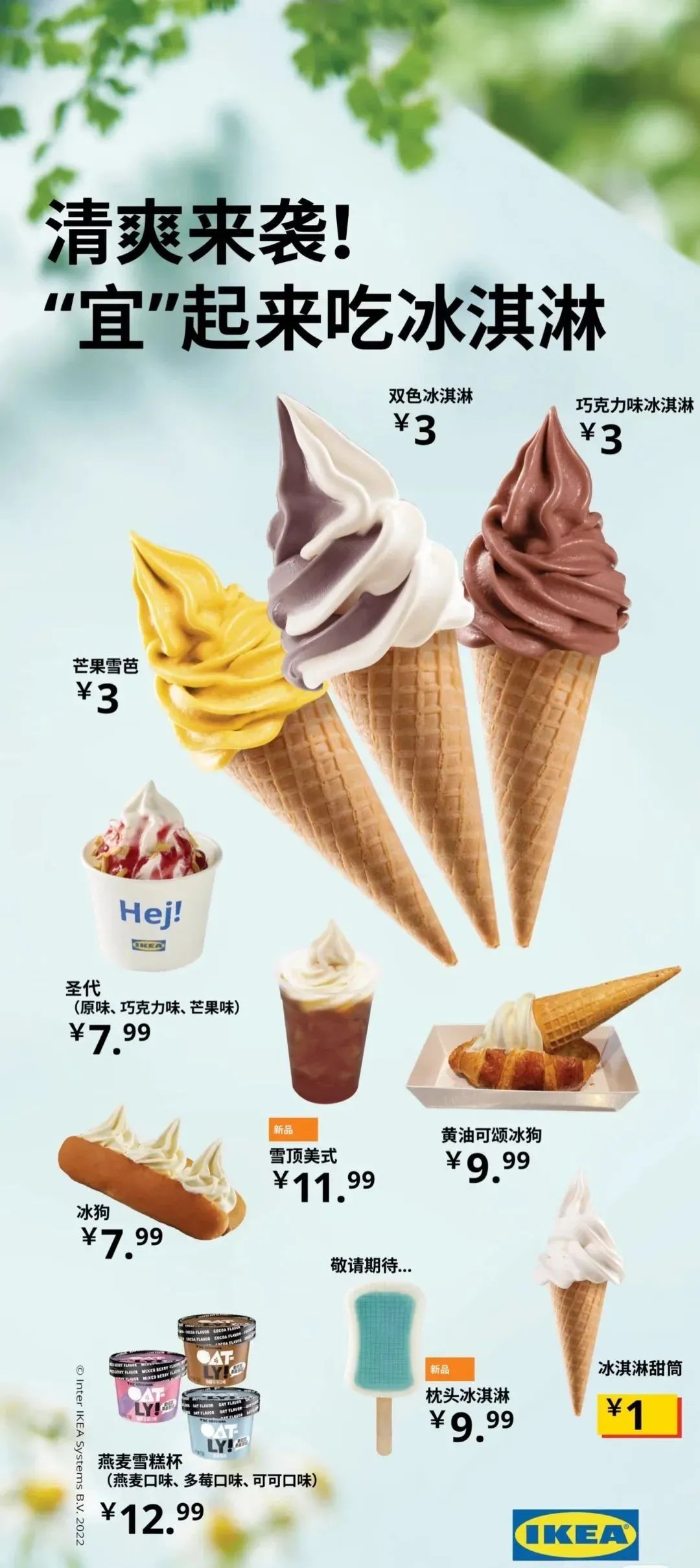 无论是“枕头冰淇淋”,还是展现设计巧思的字体海报,宜家这波夏日营销,目的无疑是达成了。