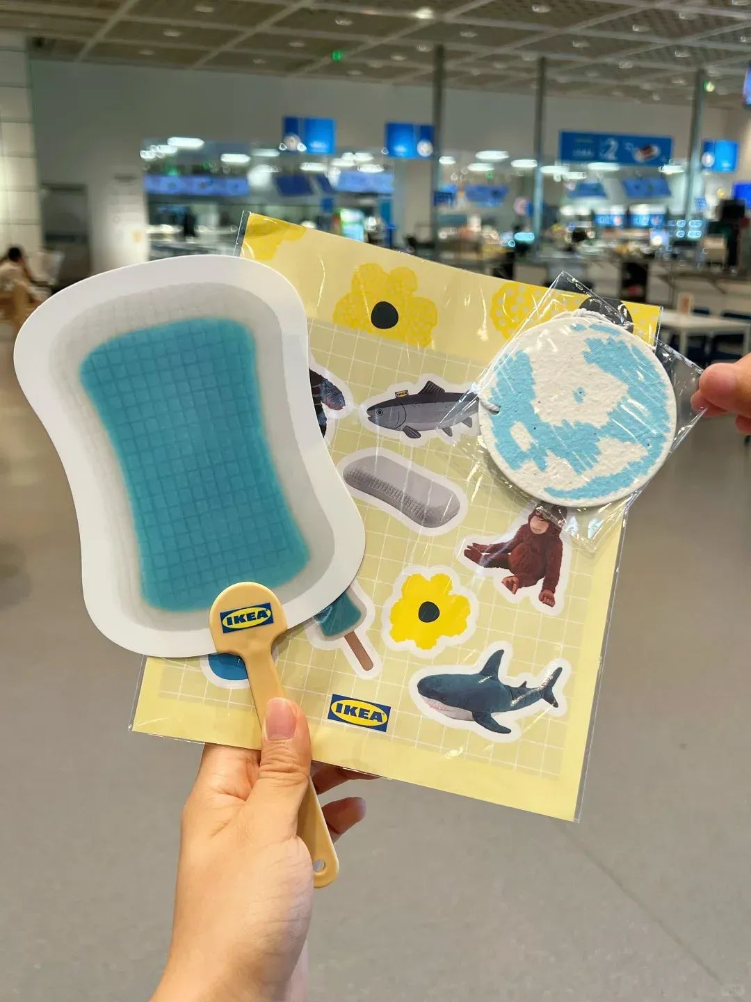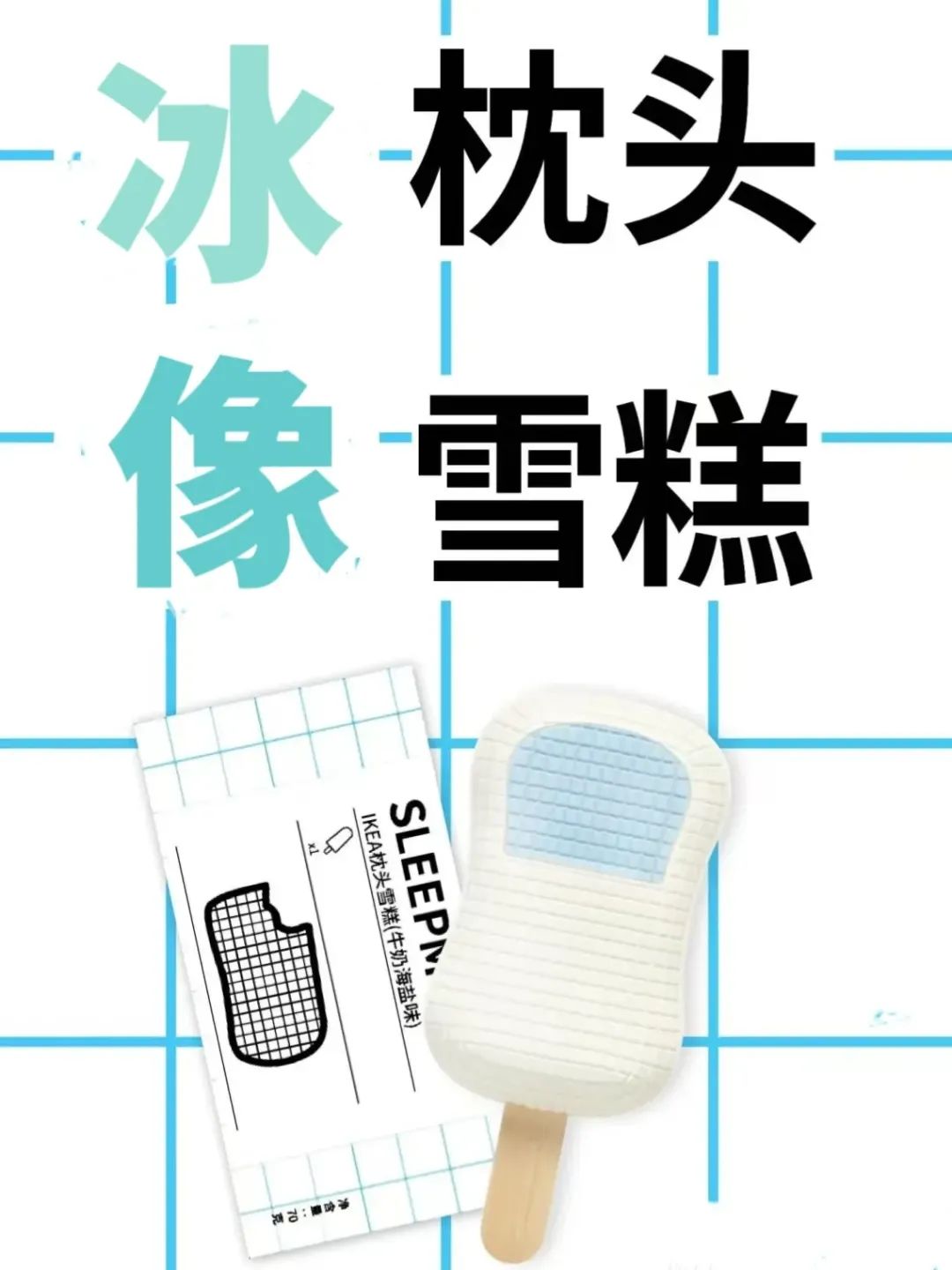 冰淇淋的方砖造型、淡蓝色泽,甚至附赠的同款小扇子,都在极力“还原”冰枕本体。