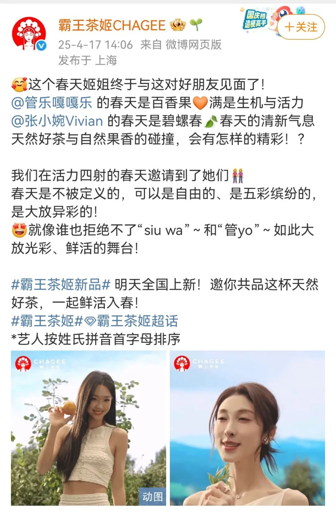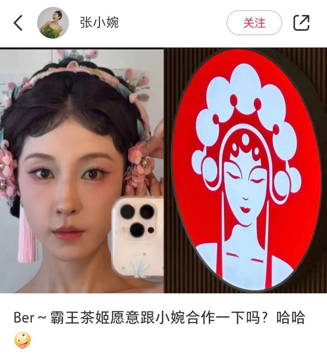 张小婉撞脸霸王茶姬logo