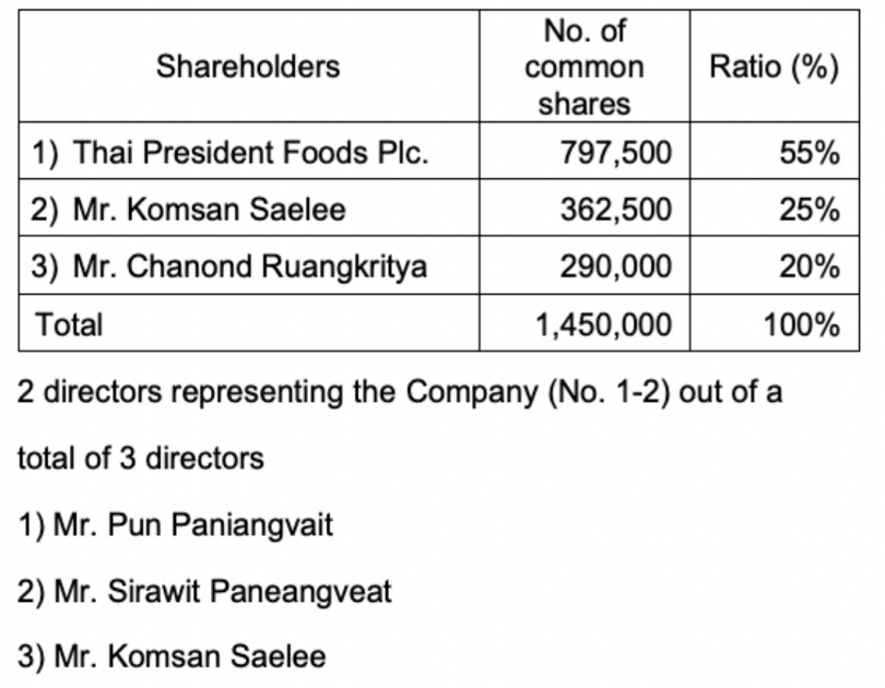惊蛰研究所发现,泰国总统饮料有限公司实为泰国总统食品有限公司于6月刚成立的新企业,其创立初衷显然是为此次与霸王茶姬的合资而来。该公司的股东阵容颇具看点,包括泰国总统食品有限公司总经理Pun Paniangvait、物流巨头Flash Express创始人Komsan Saelee,以及房地产企业Ananda Development创始人Chanond Ruangkritya。