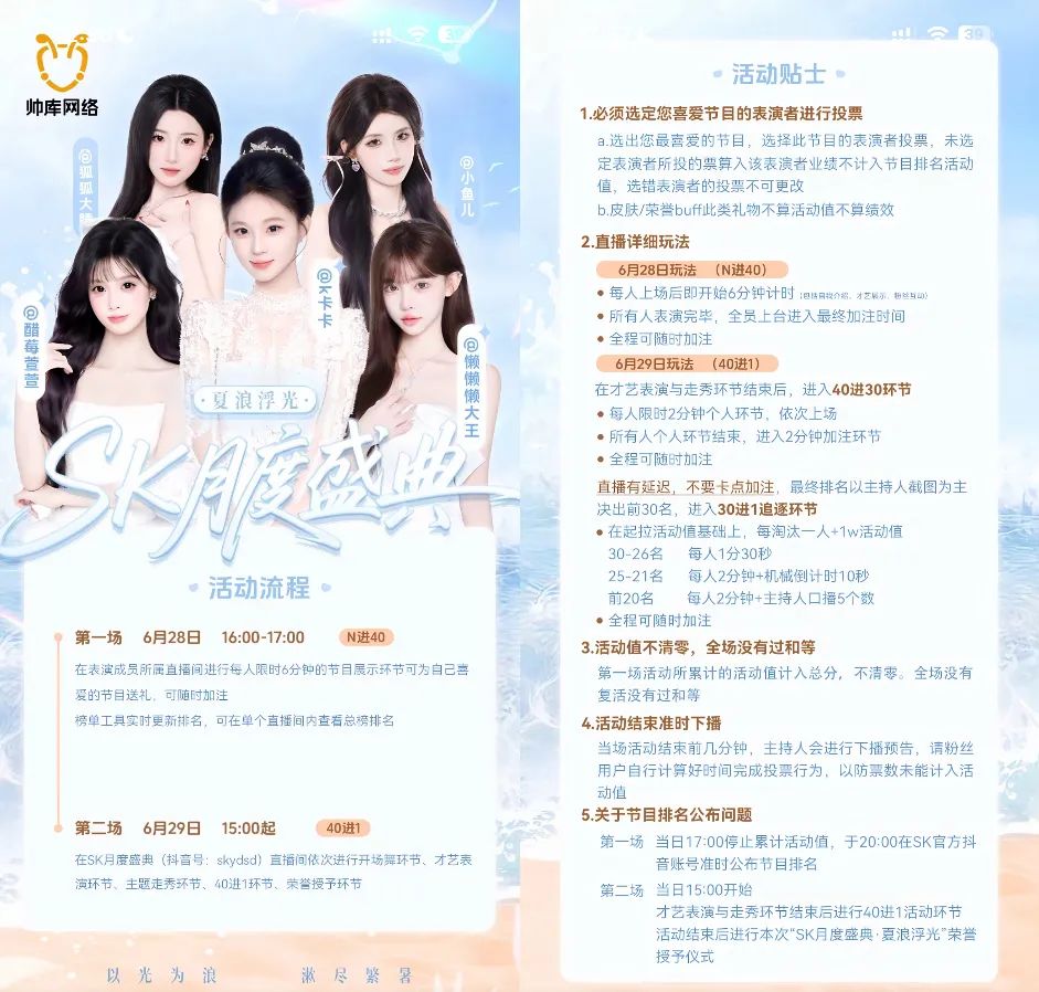 以帅库网络为例,它的思路就是把团播打造成偶像练习生综艺,赚偶像经济的钱。让团播成为一个个“SNH48”(中国知名内地女子偶像团体),SK 卡卡就是帅库网络的“鞠婧祎”(曾经是 SNH48 里最出名的成员)。