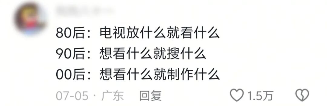 时代在进步,科技也在进步。80 后电视放什么就看什么, 90 后想看什么就搜什么, 00 后想看什么就制作什么。