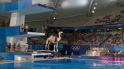 甚至连骆驼这个常年生活在干旱地区的选手都来了,没有起跳动作,直接就是一猛子扎进水里,毫无技术可言。