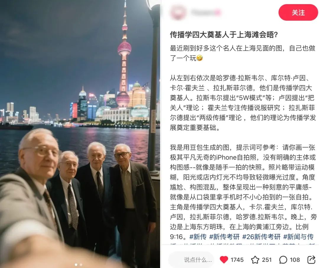 你还能看到传播学四大奠基人在上海外滩来了一张跨时空的合影。
