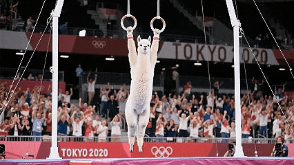 当然,动物奥运会可不止跳水这一个项目,你还能看到羊驼吊环。