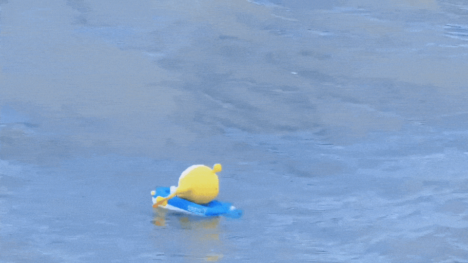 平静的海面,是培养不出优秀的蛋仔的。可真把它往水面上一放,面对大风大浪,这小玩具也没展现出多少“优秀”的模样,显得更可怜弱小无助,在原地疯狂打转。