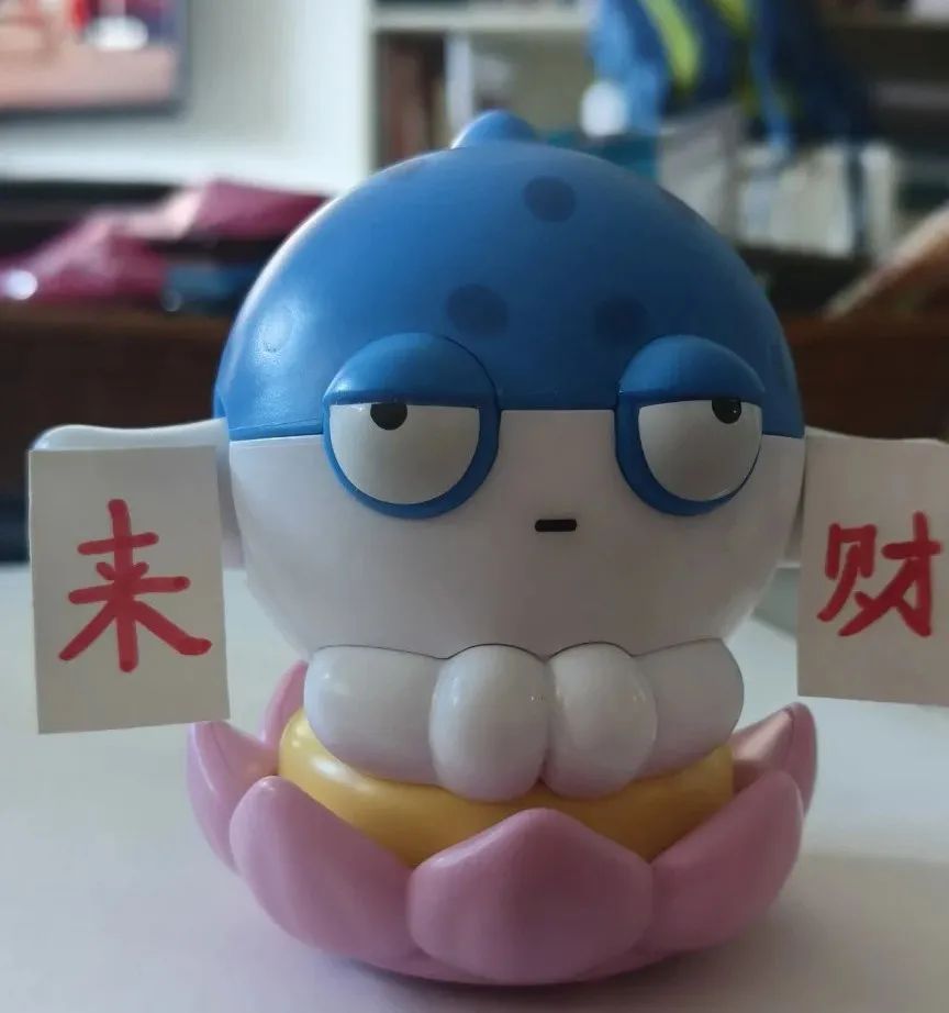 功德 +1 已经不能满足你?好办,在鱼鳍两边贴俩“来财”小纸条,从摆烂吉祥物变身工位财神爷,主打一个自我安慰式招财。