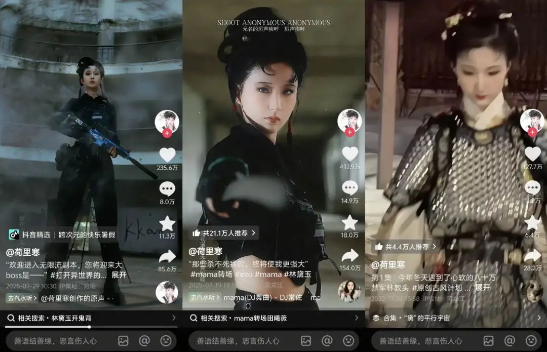 许多网友纷纷 cos 林黛玉的经典造型,其中博主@荷里寒的演绎尤为出圈,她扮演的“林妹妹”手持枪械、耍弄长剑,彻底打破了大众对角色的固有认知,反差感拉满。