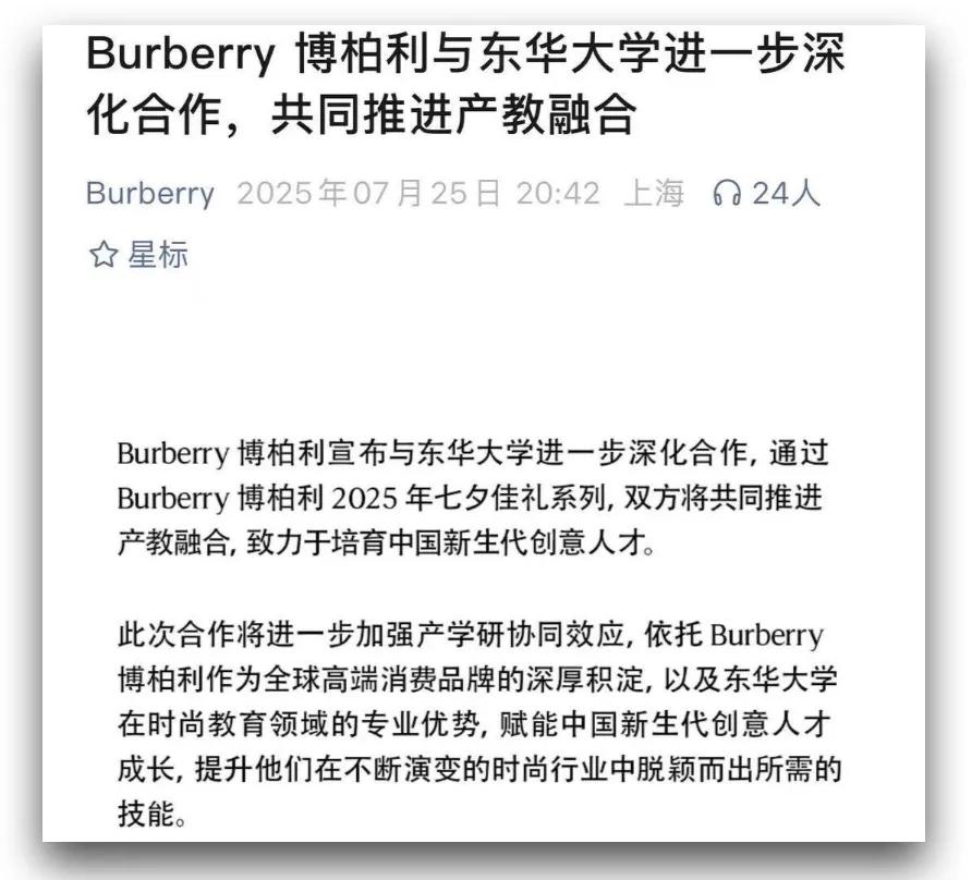 同时品牌也选择与艺术家及本土创意人合作,借助他们的专业视角实现文化“转译”,降低误读风险。例如巴黎世家邀请艺术家冯立掌镜,于上海延庆路、外滩等真实街巷取景,在凸显本土场景的同时,为品牌注入更具纪实感的美学风格;Burberry 则携手上海东华大学非遗研究中心,将中国传统结艺进行现代转译,提升文化表达的准确性与创新性。