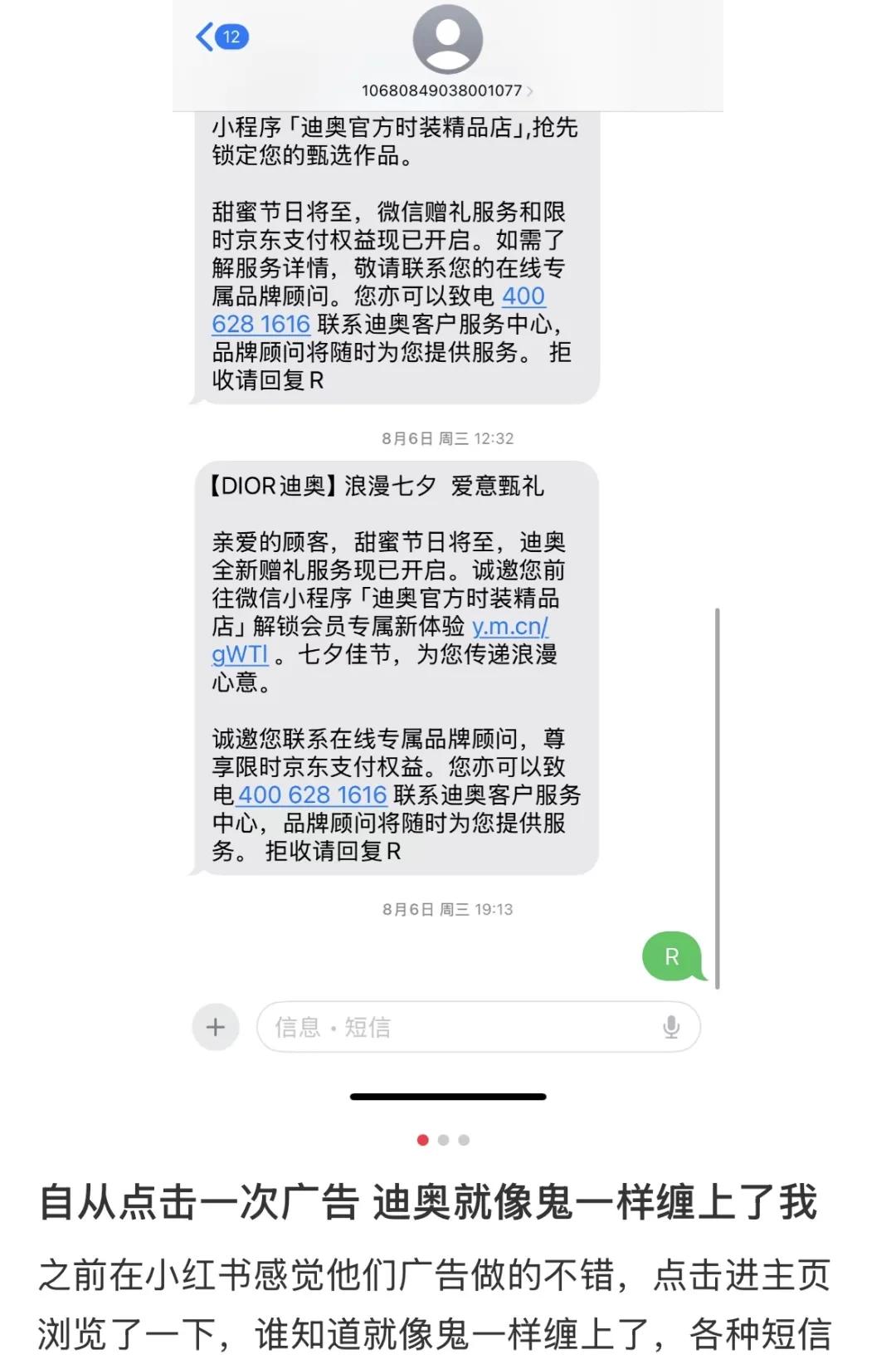 不少用户在社交平台吐槽,在点击过 Dior 广告,便会持续收到包括七夕在内的各类促销短信。这种缺乏精准度和内容价值的沟通,并不能培养品牌忠诚度,反而是将品牌拉低至普通快消品的层面,构成对品牌精心营造的高级感的直接消耗。