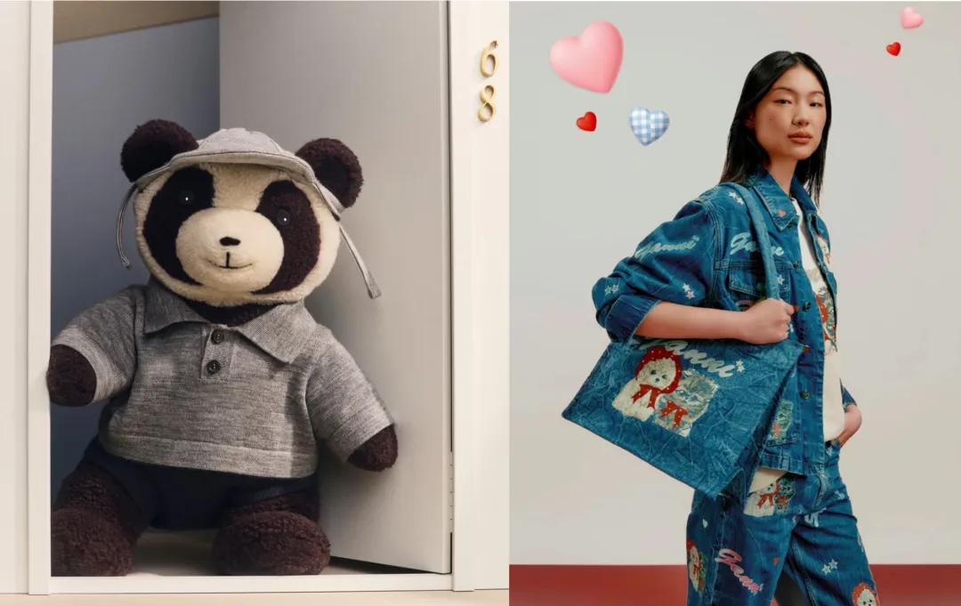 比如Loro Piana继去年推出小羊玩偶后,今年七夕续作熊猫玩偶,试图构建收藏系列化的IP产品线。一旦消费者有心收藏,那么后续每次节日推出新玩偶就都会购入。GANNI在今年七夕则是让一只头戴红色帽子的小狗和一只系着蝴蝶结的小猫成为了主角,出现在T恤、衬衫、牛仔套装及配饰上。这种更“去节日化”的设计元素,减弱了节日属性,更易激起用户收藏欲望,甚至因稀缺性催生“节后无”的限定抢购现象。