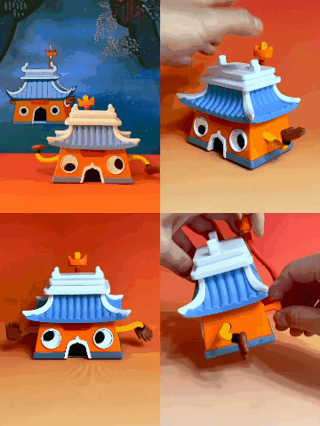 土地庙拥有“睿智眼神”,和360度乱动的眼睛、手,它既可以是不听老板念经的划水代表,也是手忙脚乱做不完作业的小孩。